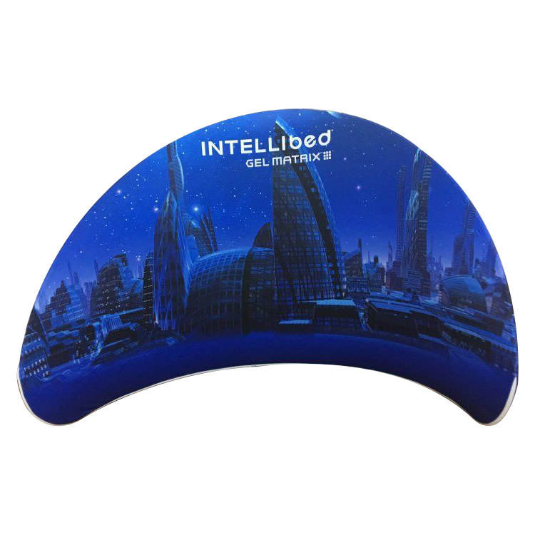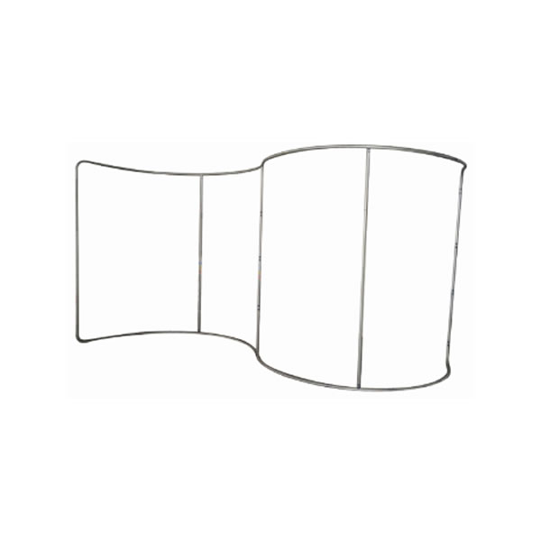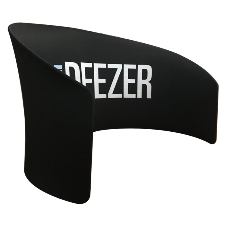 This semi-circle shape is perfect for creating a space for a private discussion. It is made with a light weight aluminum tube frame, and a pillow case fabric graphic that can be printed on either a single-side or on both sides.