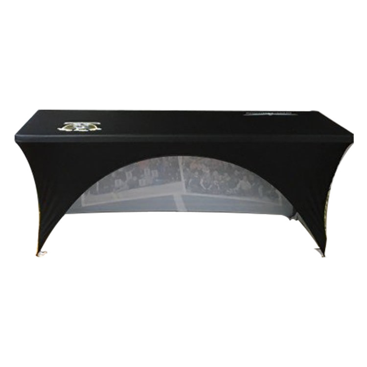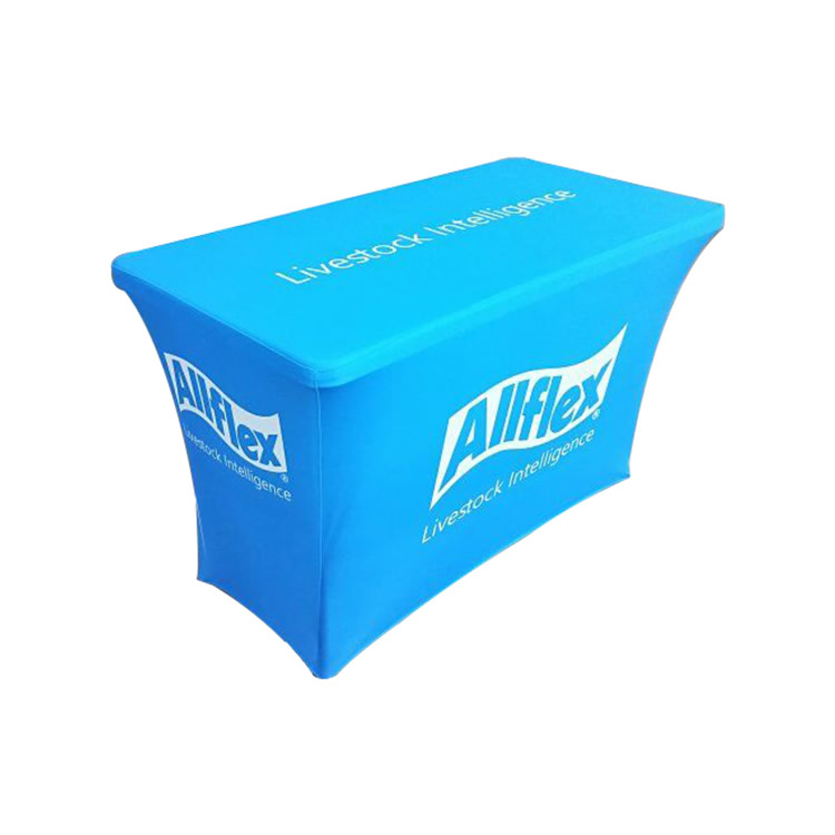 Dye sublimation involves the use of a heat press to transfer custom graphics into the table cover fabric. The fabric becomes infused with dye, creating a high-quality, durable table cover. Recommended for logos with complex designs, especially designs featuring drop shadows or gradients. Color matching is not limited, but it will take sereral hours or one day to match and confirm. Production time is 1-2 business days.