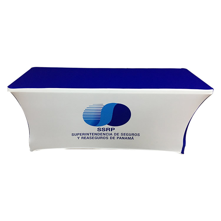 Dye sublimation involves the use of a heat press to transfer custom graphics into the table cover fabric. The fabric becomes infused with dye, creating a high-quality, durable table cover. Recommended for logos with complex designs, especially designs featuring drop shadows or gradients. Color matching is not limited, but it will take sereral hours or one day to match and confirm. Production time is 1-2 business days.